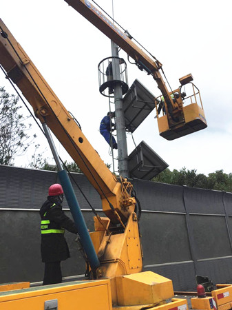 上圖為更換太陽能板現場 為盡快解決這一問題,中心聯(lián)系三家太陽能板供應商,通過對性能、價格、服務等多方面比較后,最終選定杭州一家單位負責此次太陽能板供貨、拆除及安裝工作。1月24日,設備到貨,但同時也碰上了今年入冬以來最強冷空氣。可若不及時更換,勢必會影響春運安全行車。 面對困難,中心隊員并未退縮,每天起早摸黑,帶領安裝人員親赴施工現場,負責監(jiān)管和預警工作。每當路面飛駛而過的車輛帶起陣陣寒風,吹的隊員瑟瑟發(fā)抖時,施工人員都會勸說隊員回車上休息,但都被謝絕了,不僅依舊緊盯施工進度和質量,還協(xié)助他們一起拆卸和搬運。在大家共同努力下,所有破損太陽能板在不到3天的時間里被拆卸和更換,比預定時間提前了整整一天。 更換后的新太陽能板最大輸出功率較之前提高了15%,這將大大提升太陽能板對蓄電池充電效率,保證監(jiān)控云臺有效運轉,為高速的安全暢通保駕護航。 項寅曉