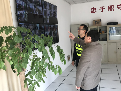圖為考察小組在崗亭內(nèi)現(xiàn)場觀看文明服務
