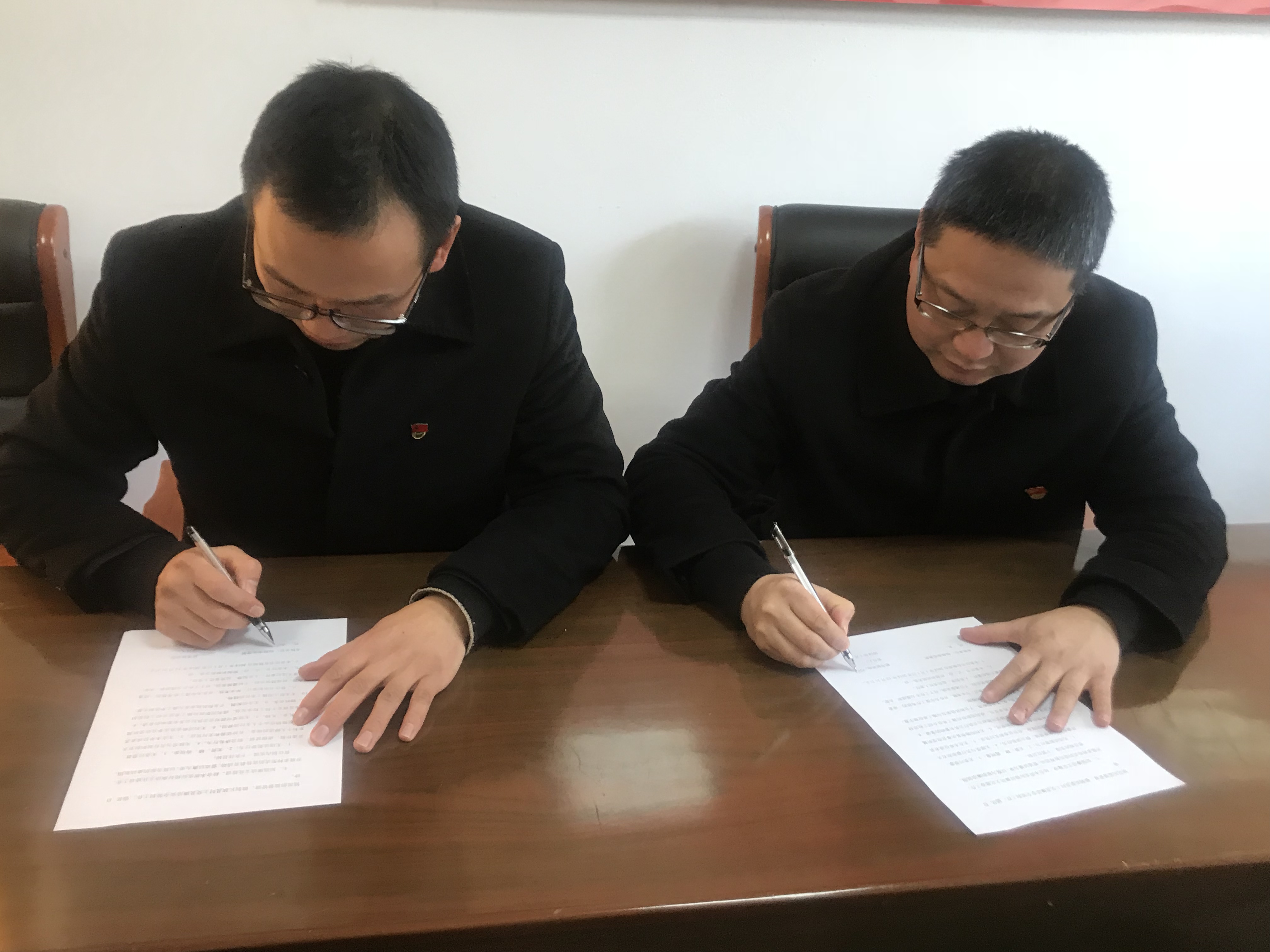 圖為黨支部書記與班長(zhǎng)簽訂黨風(fēng)廉政責(zé)任書