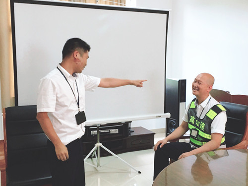 圖為員工扮演駕駛?cè)藛T 此次培訓(xùn)一改枯燥乏味的傳統(tǒng)形式,工作人員結(jié)合平時窗口實際工作,分別擔(dān)任角色扮演,生動而又形象地演繹窗口服務(wù),真實地反映出收費員在收費過程中遇到的各類情景。比如:ETC車道無法正常通過、遇堵車分流、駕駛員情緒激動、綠農(nóng)車混裝未達(dá)到免費、入口如何勸離超限車輛等各類突發(fā)事件應(yīng)急處理辦法。