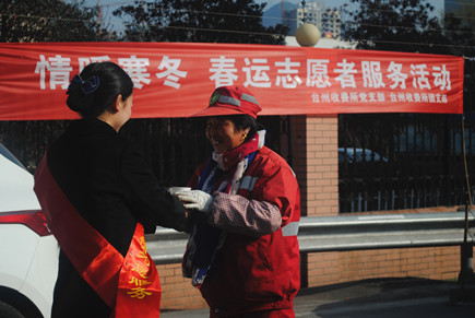 臺(tái)州收費(fèi)所開(kāi)展“情暖寒冬”春運(yùn)志愿者服務(wù)活動(dòng) 1月22日上午,臺(tái)州收費(fèi)所開(kāi)展了“情暖寒冬” 春運(yùn)志愿者服務(wù)活動(dòng)。該所黨支部、團(tuán)支部成員共計(jì)10余人參加此次活動(dòng)。