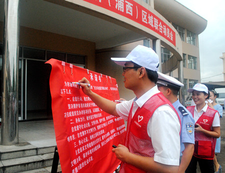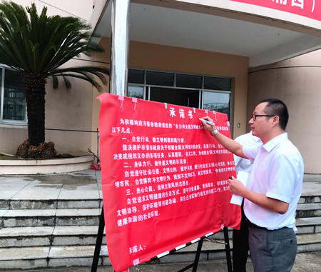 圖為公司副總經(jīng)理章海峰在承諾書上簽名 章海峰要求大家充分認(rèn)識(shí)創(chuàng)建全國文明城市的重要性,立足崗位,樹窗口形象,展行業(yè)新風(fēng),用自己的實(shí)際行動(dòng)支持創(chuàng)建工作。此次創(chuàng)建工作,時(shí)間緊、任務(wù)重,需要全體人員迅速行動(dòng)起來,從我做起,從細(xì)節(jié)做起,從點(diǎn)滴做起,逐層壓實(shí)責(zé)任,確保萬無一失。文明城市創(chuàng)建工作不僅僅是政府的事,更是全體市民的事,也直接體現(xiàn)了一個(gè)城市的幸福指數(shù),大家要以“一流的城市環(huán)境、一流的公共秩序,一流的服務(wù)水平、一流的精神面貌”迎接測評。