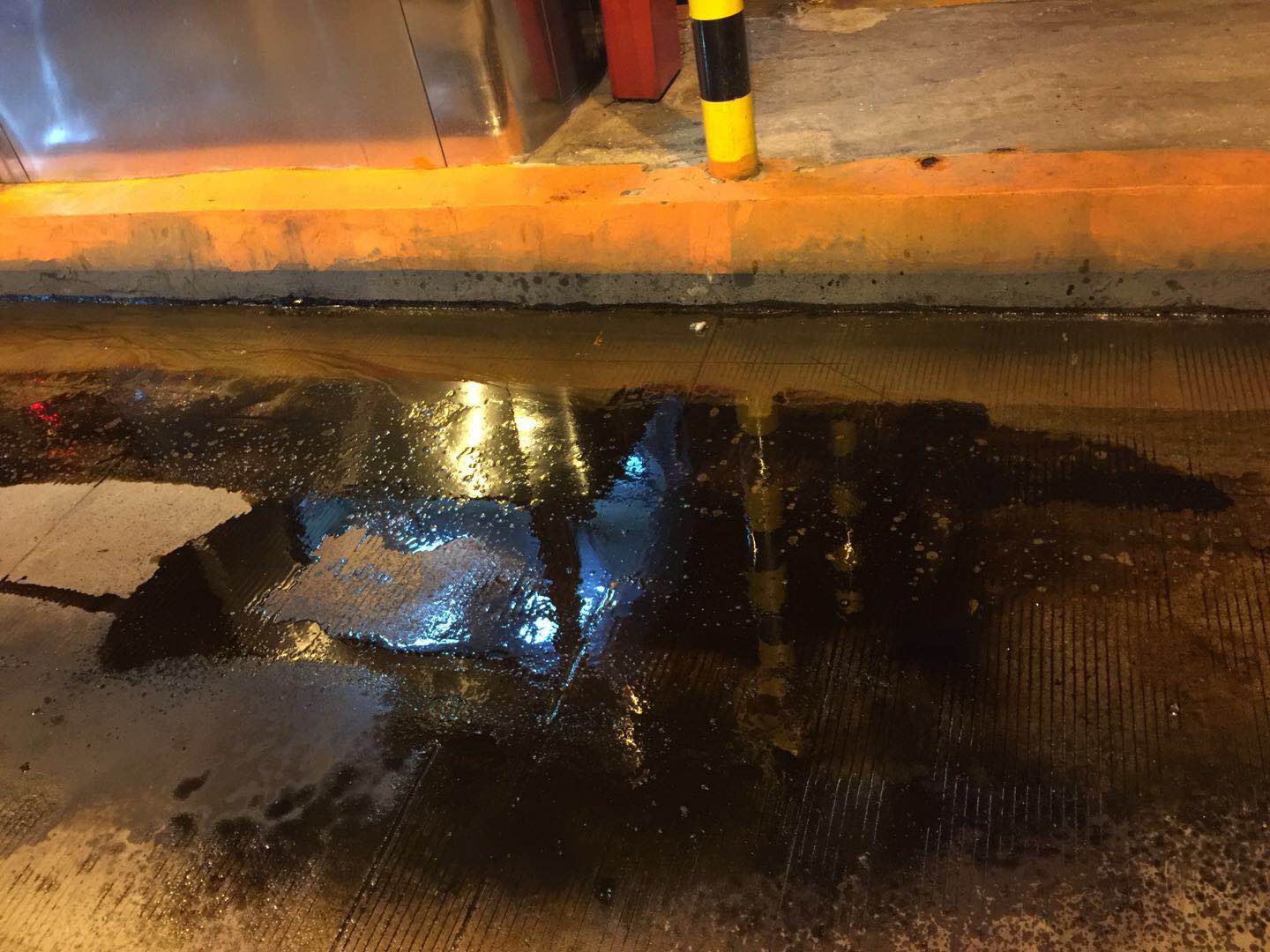 圖為車子漏的液壓油 據了解,該車從金華東入口,裝載的全是磚頭,重達56.24噸,超載7.24噸。所幸車子在下高速后出現問題,如果超負荷的載重加上高速行駛,途中突然停下將會造成嚴重后果。 在此,筆者提醒廣大貨車駕駛員:合法裝載,安全行駛。 楊雅芬