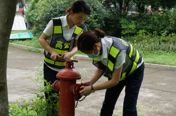 圖為消防栓檢查 隨后,該所工作人員對消防栓、防護設施、滅火器等進行檢查,這樣定期的安全檢查有效減少了安全風險,使收費所安全管理真正做到發現問題,及時整改,不留隱患。 楊雅芬