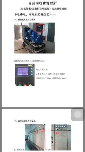 “當市電斷開,聽到發電機響起時,只需用扳手把切換銷控切換到自發電,然后按一下各區域的用電開關即可,喏,就這幾個關鍵開關……” 近日,臺州南收費所的兼職電工金小斌在配電房耐心對前來學習自發電操作的員工作現場講解,“另外,操作過程中要有安全意識,碰到異常情況停止操作?!?/span>