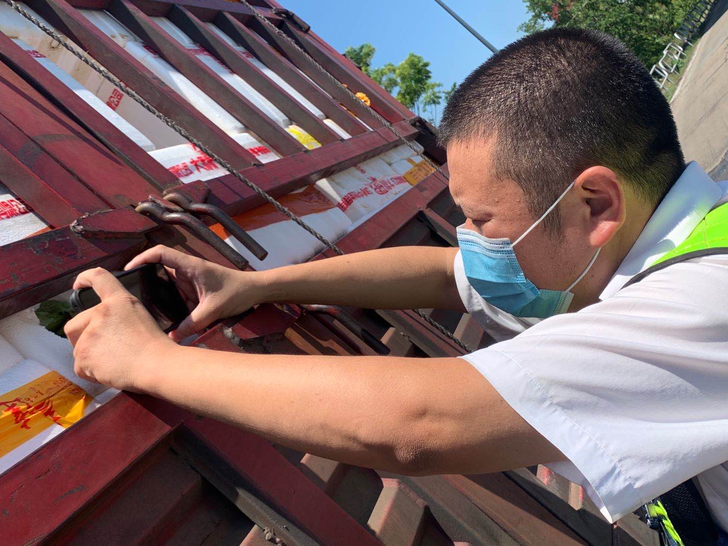 檢查綠農(nóng)車,遇到攀爬驗貨時,車輛欄桿因高溫炙烤至少在四五十度以上,臺州南收費所班長周冬子笑著說:“現(xiàn)在的車欄桿都‘辣手’了,腳底板也像踩了‘風(fēng)火輪’。” 話音還未落,只見他蹭蹭幾下,已然爬上貨車,一邊檢查貨物一邊用袖子蹭掉臉上豆大的汗珠,被曬得黝黑發(fā)紅的皮膚在烈日下格外醒目。綠農(nóng)車開走后,他顧不上滿身汗水,拿起了掃把開始打掃灑落在車道上的綠農(nóng)產(chǎn)品。因為他知道,這些灑落的農(nóng)產(chǎn)品,如不及時清理,在太陽曝曬后將會更加刺鼻,影響收費站的形象。 熱浪滾滾,卷不走收費員們工作的熱情;夏日炎炎,燃不盡收費員們堅守的意志。他們用執(zhí)著在高溫下書寫愛崗敬業(yè),用責(zé)任和擔(dān)當(dāng)保障著高速的平安暢通。 項丹穎