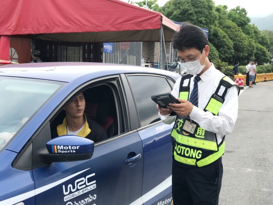 圖為收費站人員幫過往司乘激活ETC設備