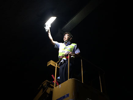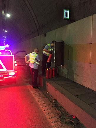 圖為工作人員更換滅火器 因隧道內(nèi)車輛往來(lái)密集,氣體和灰塵難以散發(fā),容易沉積在隧道壁、監(jiān)控?cái)z像頭及照明燈上形成污漬,此日積月累削弱了隧道內(nèi)的照明效果,影響駕駛員視線,存在安全隱患。對(duì)此,黃土嶺隧道所組織人員對(duì)隧道進(jìn)行清洗和維修保養(yǎng)設(shè)備,全面排查各類安全隱患。執(zhí)勤隊(duì)利用登高車逐一清潔寧向左洞內(nèi)監(jiān)控?cái)z像頭及照明燈,檢查消防設(shè)施狀況,統(tǒng)一對(duì)滅火器進(jìn)行掛牌完善記錄,并協(xié)同維養(yǎng)中心檢修溫向隧道照明系統(tǒng)線路,修復(fù)損壞的燈具。 經(jīng)過(guò)清洗保養(yǎng)后的黃土嶺隧道,燈光通明,監(jiān)控清晰,有效地保障了隧道的安全暢通。 毛譯聆