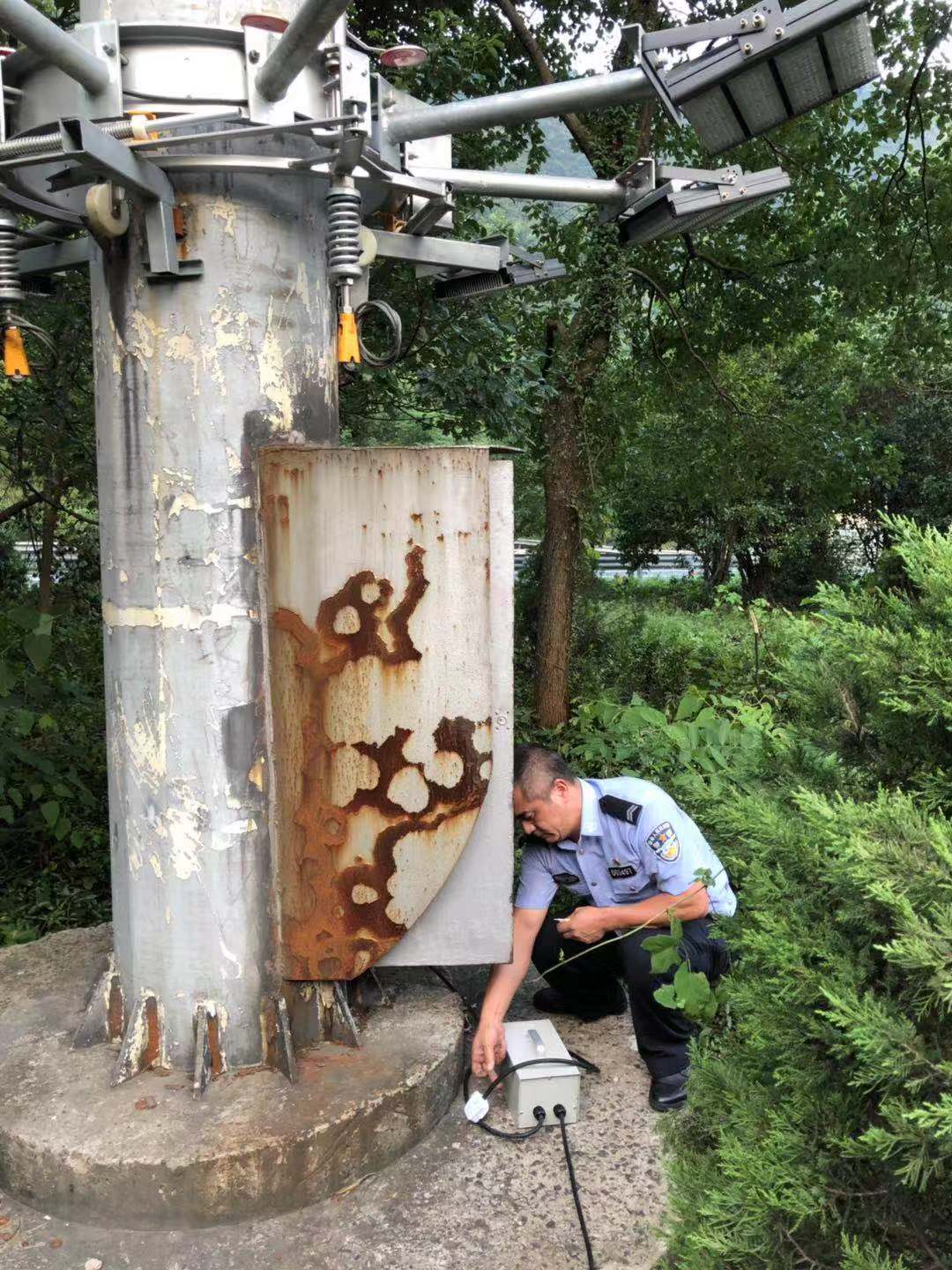 圖為執勤隊員查看豎井 8月10日凌晨01:18分,受臺風影響,黃土嶺隧道突然停電,當時正值臺風登陸期,風大雨急,執勤隊員二話不說,不顧狂風暴雨立即展開巡查排除故障,后經現場確認是供電部門受臺風影響而停電。執勤隊隨即啟動停電應急預案,切換供電線路,啟動柴油發電機供電,保障了所內及隧道部分正常用電。