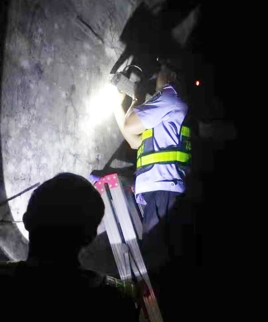 圖為斜井內裝好的燈 此次工作任務的出色完成,不僅充分體現了黃土嶺隧道所執勤隊員較高的業務水平和較強的團隊協作能力,同時也是在工作崗位上踐行“不忘初心、牢記使命”主題教育精神,在履職盡責中彰顯黨性和本色。 林玲
