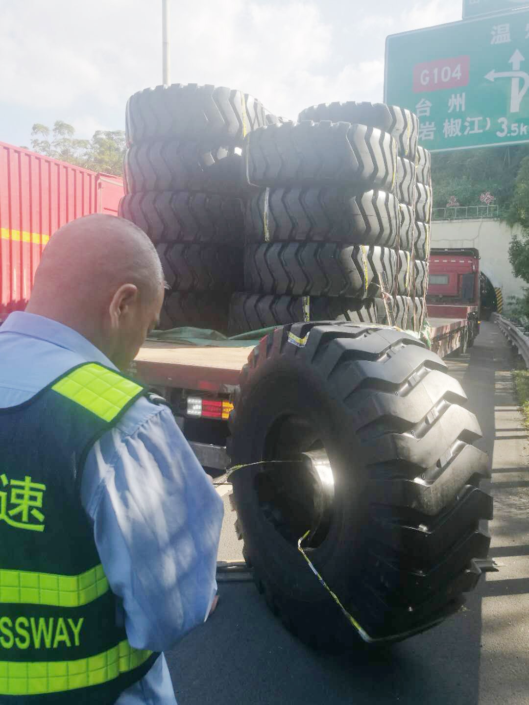 執(zhí)勤隊(duì)接警后立即趕往事故地點(diǎn),一輛運(yùn)載輪胎的貨車停靠在主車道,其中一個(gè)巨型輪胎滑落到硬路肩上,致使后方車輛紛紛避讓。為及時(shí)消除險(xiǎn)情,執(zhí)勤隊(duì)快速在現(xiàn)場做好安全警戒工作,同時(shí)將現(xiàn)場情況反饋給監(jiān)控中心。由于貨車綁繩索松動,重達(dá)300多斤的輪胎脫落在地,隨后執(zhí)勤隊(duì)協(xié)同施救中心、駕駛?cè)?/span>員合力將掉落的輪胎先拖至車旁,經(jīng)過長達(dá)半個(gè)小時(shí)的搶險(xiǎn),跌落的貨物終于完好無缺地回到貨車上,道路恢復(fù)暢通。 筆者溫馨提醒:在高速公路行駛過程中,駕駛?cè)藨?yīng)注意將車上的貨物固定好,途中要隨時(shí)注意貨物及捆綁繩索是否松動。無論是車輛撒落物還是人為拋灑物,都會給道路安全暢通埋下了重大隱患! 林玲