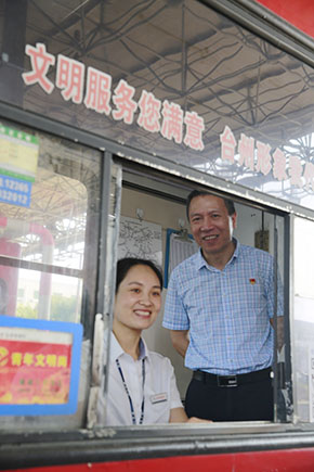 圖為公司副董事長、總經(jīng)理張建平慰問崗?fù)ぎ?dāng)班收費(fèi)員