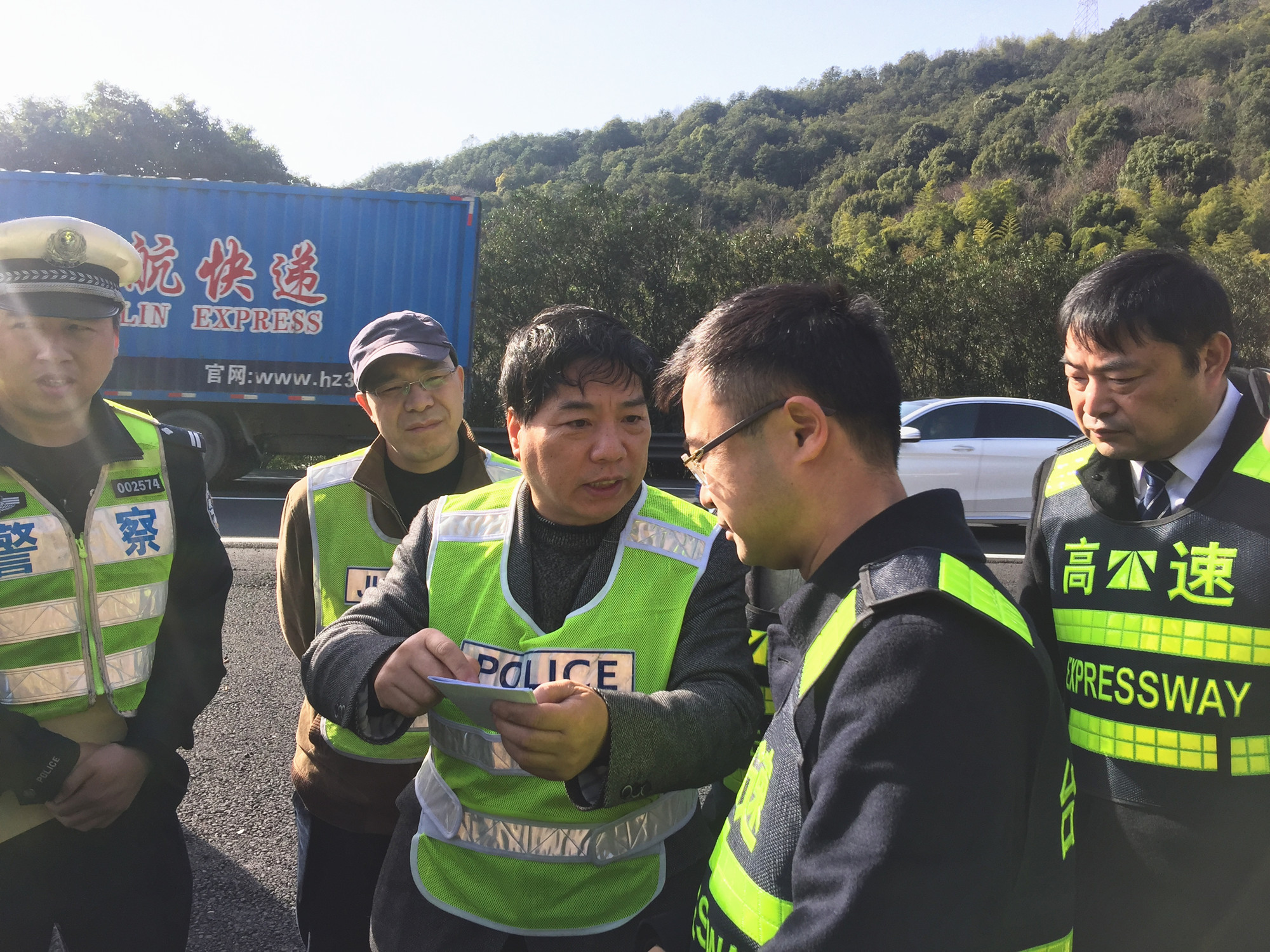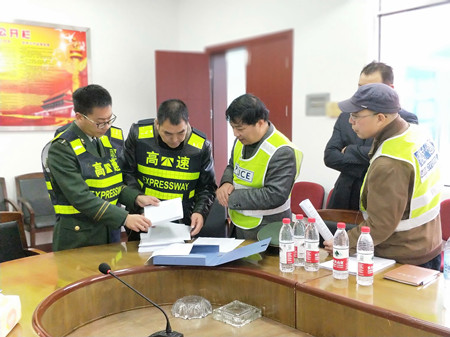 圖為檢查組一行在大溪嶺隧道所檢查消防內(nèi)業(yè)資料