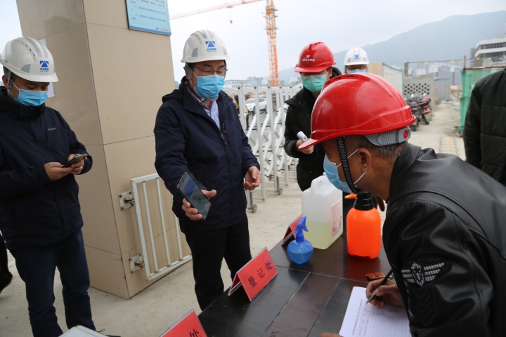 公司下屬的房產(chǎn)集團(tuán)作為勞動密集型,同時又是對工期最敏感的企業(yè),防疫和復(fù)工壓力重大。陳文波非常重視這項(xiàng)工作,2月27日,在集團(tuán)黨委委員、副總經(jīng)理羅小將的陪同下,檢查房產(chǎn)集團(tuán)防疫工作及復(fù)工進(jìn)展情況。