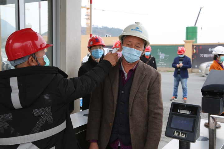 “這是我的綠碼。”臺州高速集團(tuán)黨委書記、董事長、總經(jīng)理陳文波主動向黃巖玖璽逸墅項(xiàng)目施工工地的防疫人員出示自己的綠碼。經(jīng)過測體溫、登記、檢查綠碼、消毒等防疫流程,陳文波一行進(jìn)入施工工地。