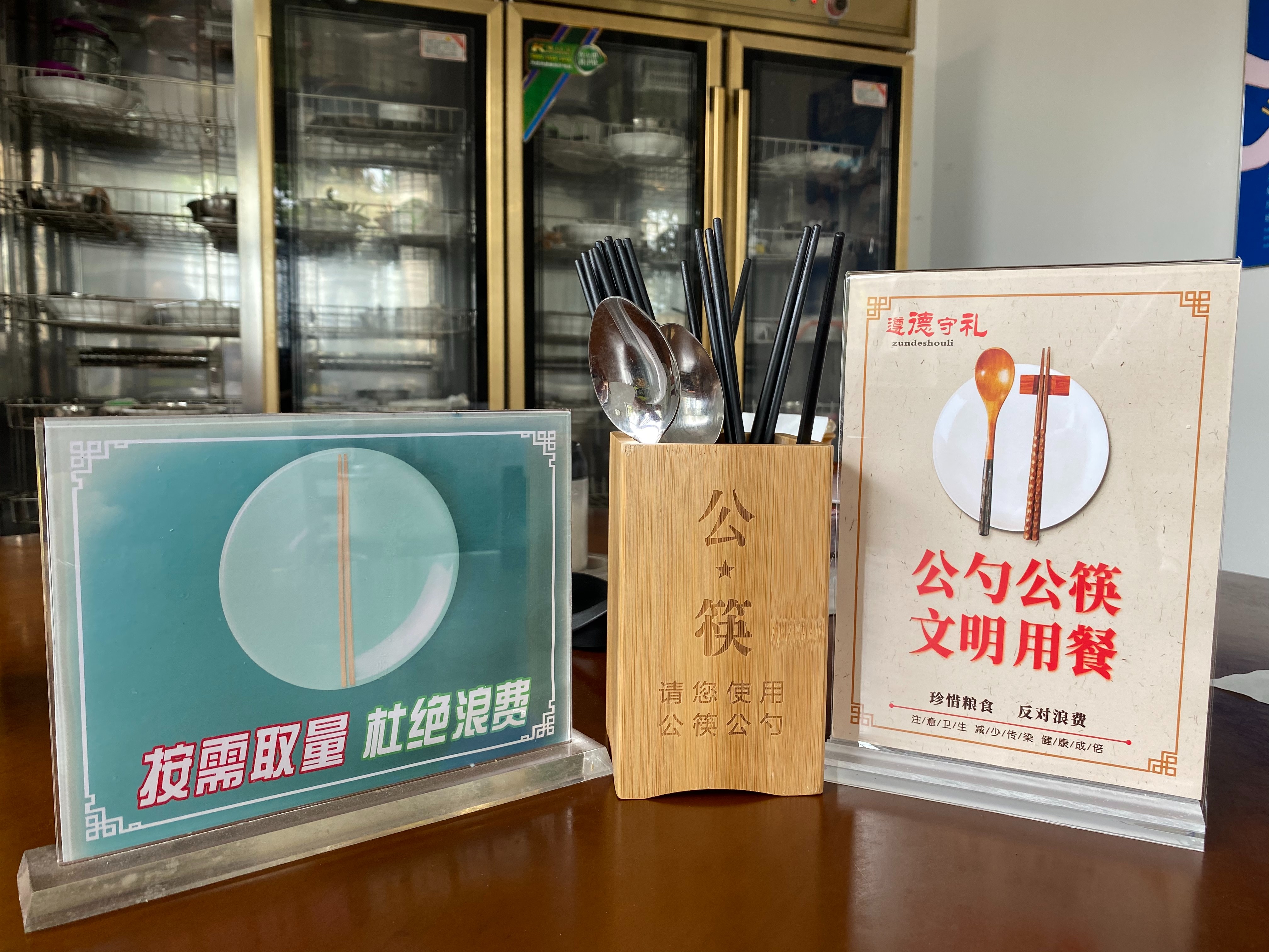 該所通過食堂粘貼宣傳畫、餐桌放置宣傳標牌、設置公用筷子筒等多種方式進行廣泛宣傳,以此提升“反對浪費、公筷公勺、文明健康”的活動知曉率,促進全體員工積極參與,引導員工自覺杜絕“舌尖上的浪費”。