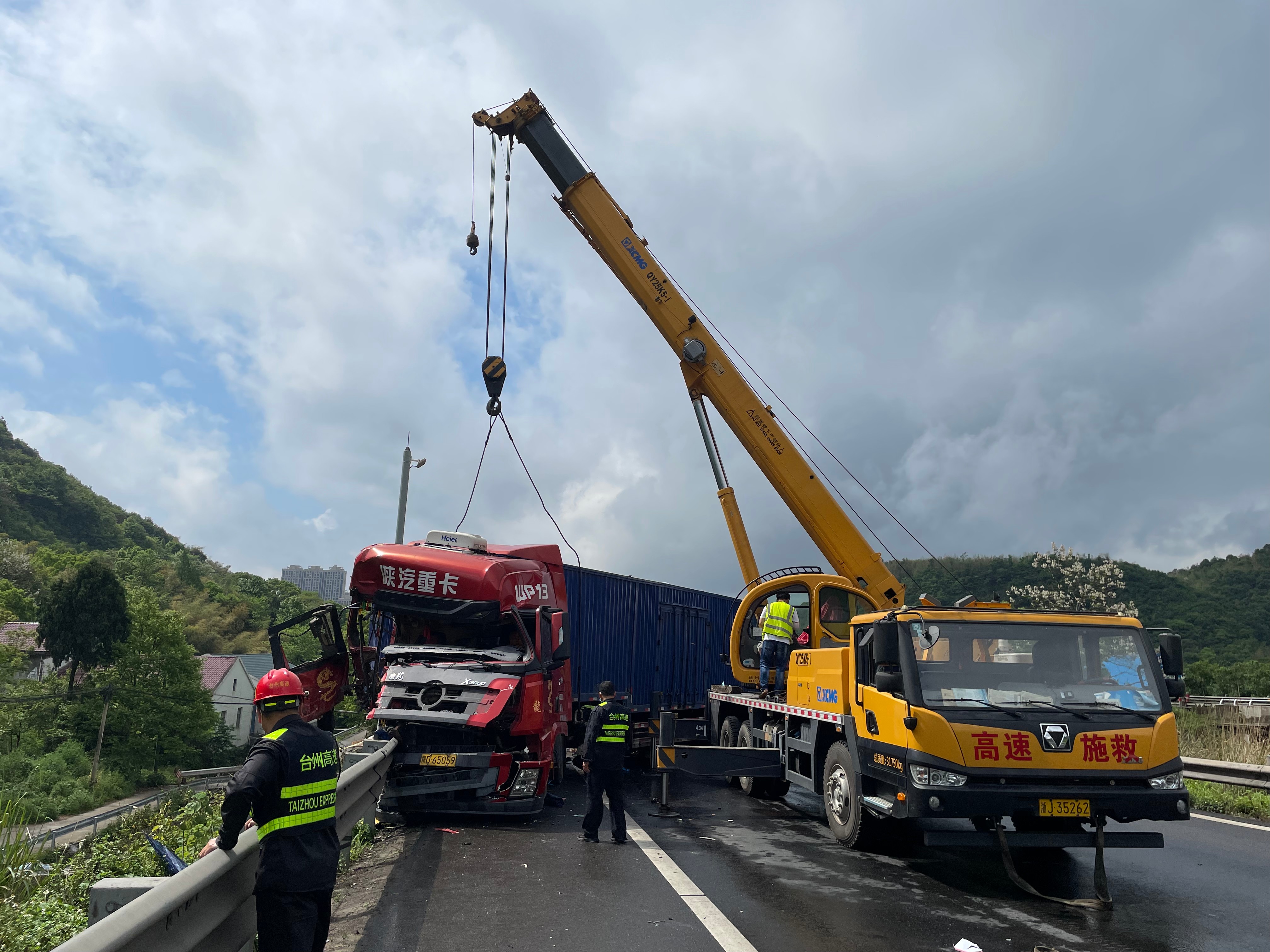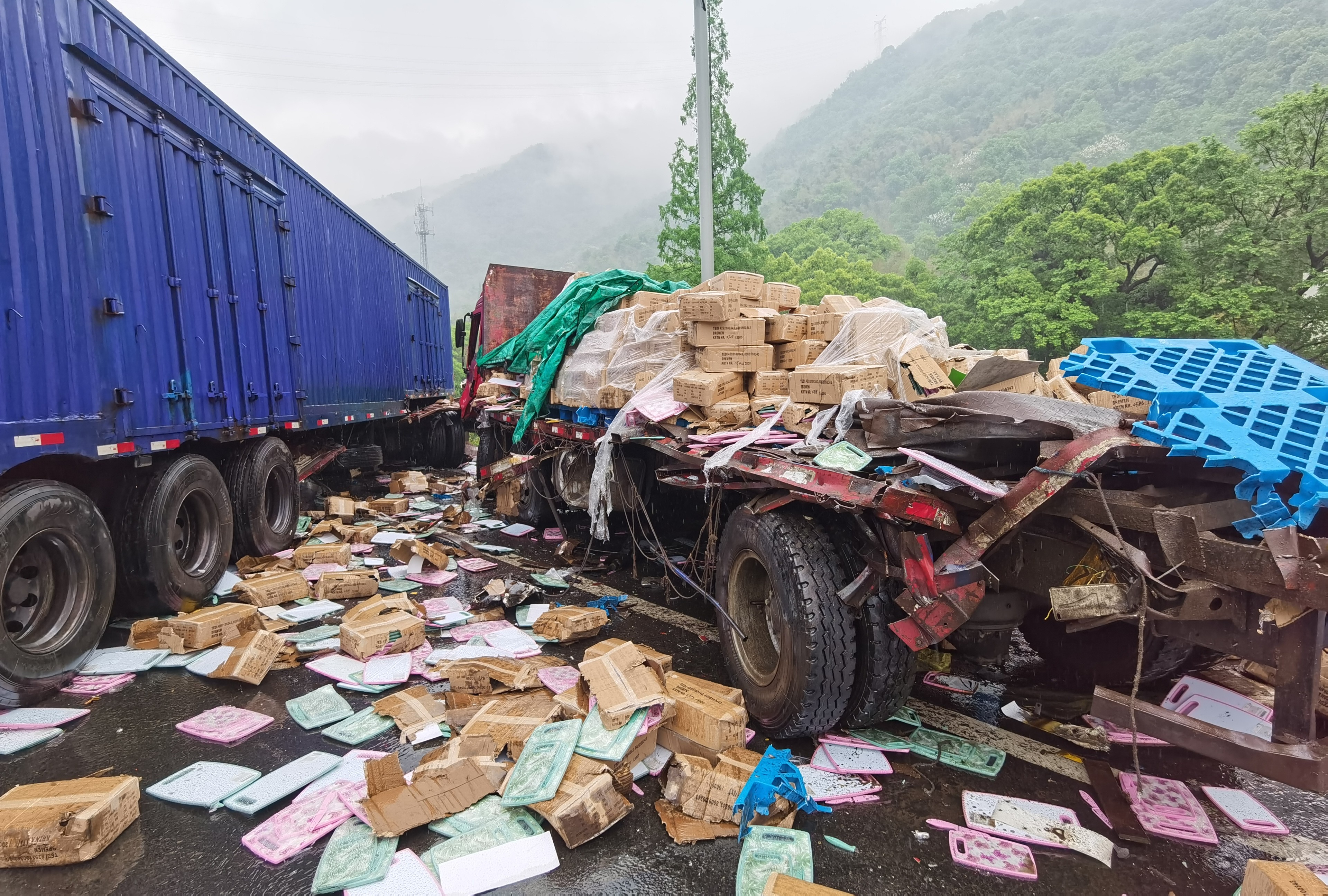 隨后,拖車、救護車、吊車相繼到達,所有人員立即有序分工,因大貨車車頭卡在護欄,需要切割,拖車難度較大需要吊車將其拖出,現(xiàn)場救援緊急開展。隧道所工作人員協(xié)助駁貨車清理貨物和散落的車架,保證高速路面通暢。 后經(jīng)詢問了解,平板貨車因車輛拋錨停在黃土嶺寧向洞口200米處,雖然已將安全警示牌放在車輛后方,但車輛未完全停靠邊上。后方一輛箱式貨車發(fā)現(xiàn)時緊急剎車,由于當時正下大雨路面濕滑,緊急制動后車輛發(fā)生擺尾失控,司機急打方向想要救車阻止,但是依然撞上了前方的拋錨貨車。 再次提醒廣大司乘人員,雨天路滑,要控制車速保持車距離,遇車輛拋錨,車靠邊人撤離,并撥打高速救援電話12122。 蔣弓