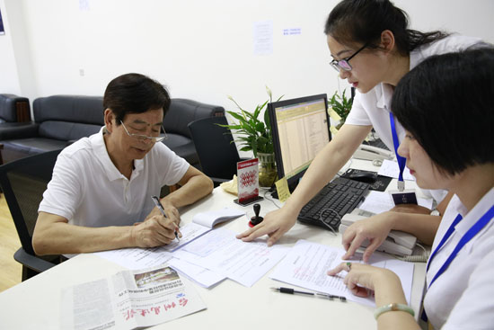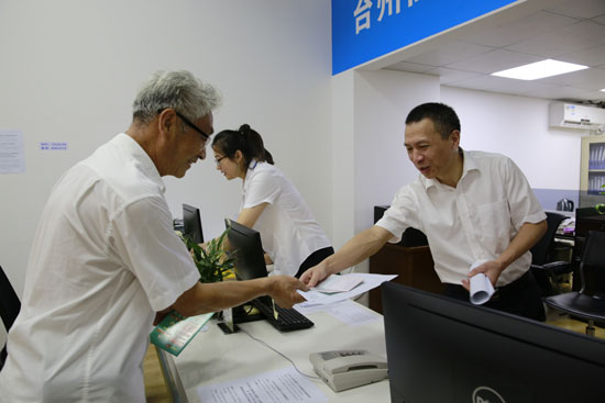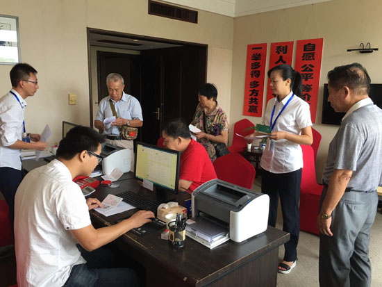 據(jù)椒江收購點(diǎn)工作人員朱海燕介紹,集團(tuán)高齡股東較多,如果他們前來辦理,工作人員會及時上前攙扶股東到審核區(qū)坐下,核對股東是否確權(quán),審核身份證、銀行卡等資料,如果一切無誤便直接帶領(lǐng)股東到辦理區(qū)。