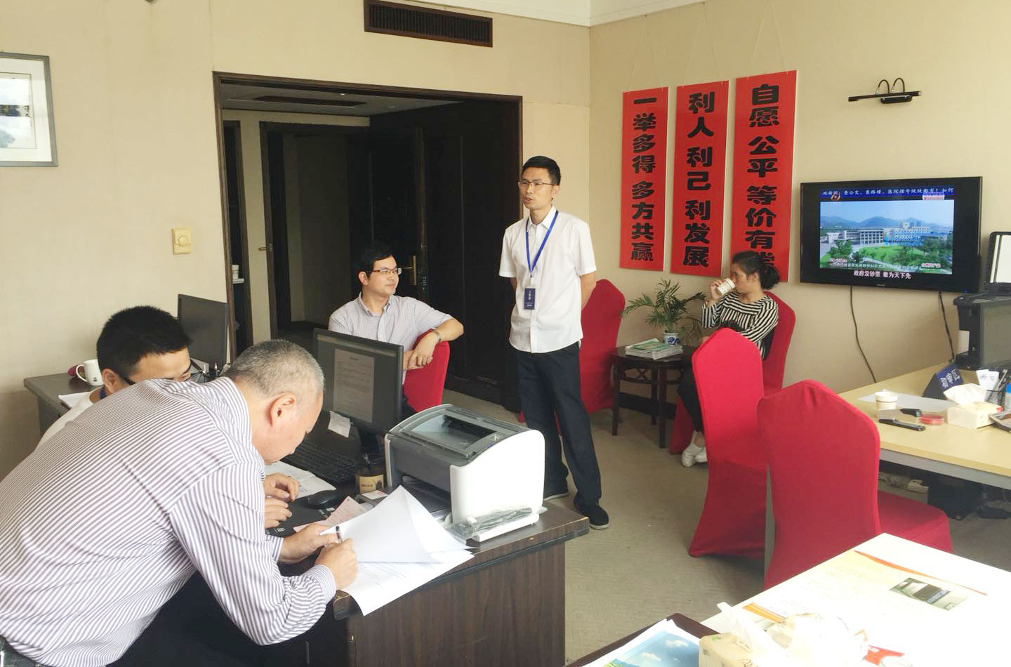 圖為臺州市政府副秘書長蘇元蓬走訪三門股權收購點 蘇元蓬一邊喝著茶水,一邊和大家拉起了家常。他是三門人,趁著國慶中秋假期回家探望親人,就來三門收購點走走,看望一下大家。 蘇元蓬回顧了市政府與集團公司此次股權收購的前期準備與工作動員,并詳細詢問了公司目前的收購情況和三門點的收購進度。工作人員介紹由于前期三門縣政府高度重視此次收購工作,特別是三門縣委常委、常務副縣長葉邦漢牽頭,召集全縣各機關單位、鄉鎮街道召開高速股權收購動員會。在收購過程中,三門電視臺、三門報等媒體宣傳到位,各相關單位全力配合,縣里老領導帶頭轉讓,三門股權收購工作進展順利。 “三門縣城里,你們有沒有做廣告宣傳?股東們是不是都知道了?”蘇元蓬問道。“有的,有的,這是我們公司準備的公告海報。”工作人員林玲遞過一份海報。“我們打算節后張貼。”當得知三門收購點在對前來辦理轉讓的股東隨訪和電話問詢中,已確認大多數股東都已知曉股權收購這個消息后,蘇元蓬大加贊賞。 蘇元蓬強調,要強調此次股權收購對于企業轉型升級的重要意義,現場工作人員要耐心解釋,深入宣傳,特別是那些已經辦理轉讓的股東,由他們口口相傳會更有說服力。對于國企法人股東,一定要借助政府的力量,由臺州市國資委與當地國資局共同推動,促成國企法人盡快轉讓,早日完成股權收購任務。 邵全森