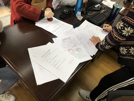 圖為法人股轉(zhuǎn)讓代表現(xiàn)場蓋公章
