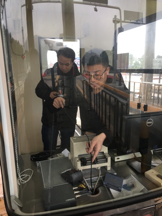 圖為工作人員在安裝手持OBU讀寫器 在得知這一情況后,工程部機電設備維養(yǎng)中心一開始想到了通過加大天線功率的方法來提高OBU讀寫成功率,不但收效甚微還造成了鄰道干擾,并將同信道的相鄰車道車輛OBU信息也一同讀取了,造成了數(shù)據(jù)混亂,增加了收費人員的工作量。 正在一籌莫展之際,中心負責人通過全省收費系統(tǒng)互助群了解到省內(nèi)部分路段針對這一狀況啟用了手持式OBU讀寫器,在反響不錯后,中心人員立刻聯(lián)系了設備廠家訂購郵寄。 經(jīng)過維護人員一天的安裝調(diào)試,手持式OBU讀寫器已成功接入到每個車道崗亭。這種新型手持讀寫器具有DSRC專用短程通信接口,可以識別車輛上OBU設備內(nèi)特有的編碼,判別車型,寫入信息,計算通行費用,并自動從車輛用戶的專用帳戶中扣除通行費。當現(xiàn)有車道天線交易失敗時,收費人員便可用它對車輛OBU進行重新搜索并自動進行交易。 手持式OBU讀寫器的投入使用,彌補了現(xiàn)有車道OBU讀寫器的缺陷與不足,有效減少車輛擁堵現(xiàn)象的發(fā)生,便于收費人員現(xiàn)場靈活操作,提高收費站的通行效率。 項寅曉
