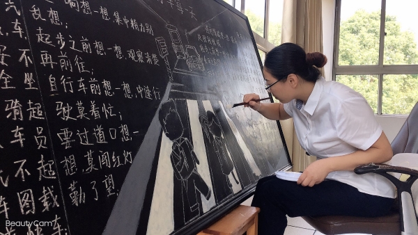 活動前期,臨海南收費(fèi)所臨時(shí)組建五人板報(bào)小分隊(duì),充分利用空余時(shí)間搜集有關(guān)安全教育資料,對內(nèi)容、畫面進(jìn)行認(rèn)真整理、篩選。最終決定三個(gè)板塊,以提高安全教育為目的,以不同風(fēng)格主題來呈現(xiàn),從多方面、多角度設(shè)計(jì)與繪制,達(dá)到了更好的安全教育宣傳效果。 活動開展后,參與者們分配好各自的任務(wù)后,出黑板報(bào)的工作便熱火朝天地展開了。大家利用自身的特長,通過粉筆字、繪畫等藝術(shù)形式,對黑板報(bào)進(jìn)行了精心的設(shè)計(jì),主題鮮明,內(nèi)容充實(shí),圖文并茂,趣味性強(qiáng),全方位、多角度地宣傳了《消防安全》、《食品安全》、《交通安全》三大主題。其中在交通安全宣傳方面,如何使交通安全內(nèi)容,更加直觀形象、簡單易懂的、眾人易于接受呢?大家通過反復(fù)嘗試,決定打破傳統(tǒng)模式,避免枯燥說教,把交通宣傳教育知識融入到兒歌中,通過朗朗上口的兒歌形式,傳達(dá)一些基本的交通規(guī)則,幫助大家養(yǎng)成自覺遵守交通規(guī)則的意識,提高自我安全防護(hù)能力。最后經(jīng)過大家日夜趕工,黑板報(bào)的工作在大家的共同努力下順利完成。