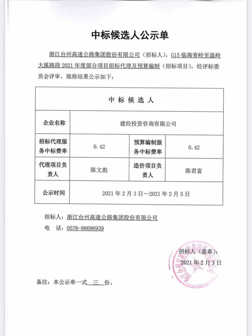 2021年度招標代理及預算中標候選人公示單