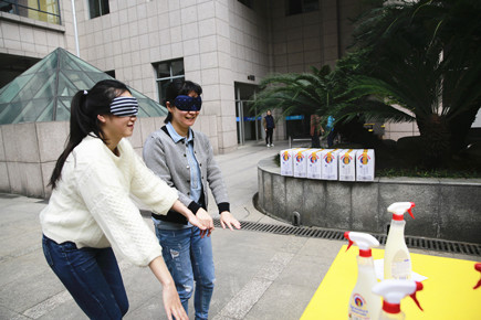 圖為活動工作人員集體照 在現場,職工們領著集花冊,按照活動規則積極收集夾彈珠、吹乒乓球、套圈、擠壓板跳繩、頂球、啤酒瓶扔筷子、蒙眼取物共7個項目的印花,領取禮品。這邊,一位同事趴在桌上,正在仔細瞄準細小的啤酒瓶口扔筷子,那邊,傳來套圈項目的陣陣贊揚聲,現場還有男女合作頂球……大家玩得不亦樂乎。其中擠壓板跳繩、蒙眼取物項目現場異?;钴S,在一旁等待的職工幫助加油打氣,整個活動充滿趣味和挑戰性。 參賽職工們順利完成了各個項目,大家在和諧愉悅又不乏激烈的氛圍中鍛煉了身體,釋放了生活和工作的壓力。 江涓