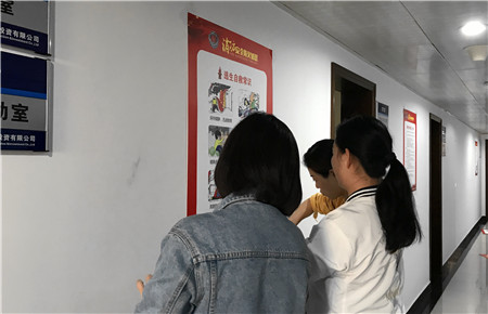 市政公司走廊上,員工們經過消防安全宣傳畫報前討論了起來。今年的消防安全月活動,市政公司走廊上平添了一道亮麗的“風景線”,很多員工經過的時候,抽工作上下班的空檔認真地學習了消防安全知識。