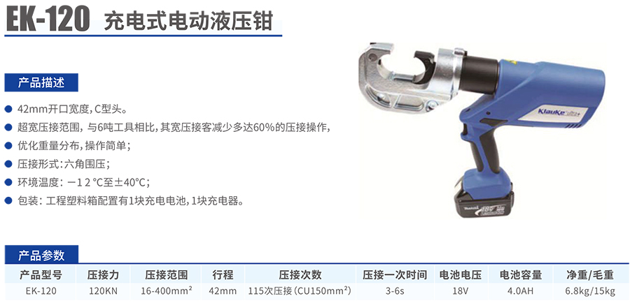 EK-120充電式電動液壓鉗